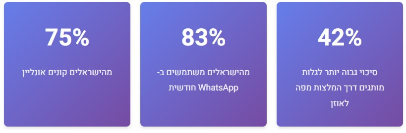 - 78% מהלקוחות רוכשים מהספק הראשון שעונה להם.